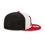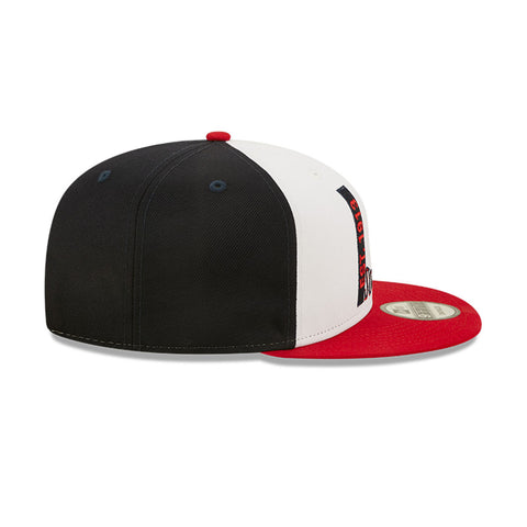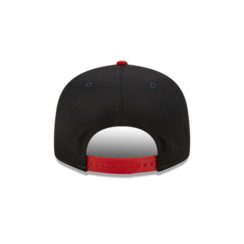 • New Era 9Fifty features custom, throwback inspired artwork embroidered on the front. The mid and rear panels ir done in navy color, complemented by a contrasting red button and visor for a truly retro look. Grey undervisor.